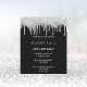 A modern, stylish and glamourous invitation for a woman's 50th (or any age) birthday party. A chic black background with elegant faux silver glitter drips, paint dripping look. Personalise and add a name and party details. The name is written with a trendy hand lettered style script. White letters.