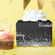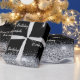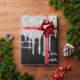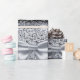 Elegant, classic, glamourous and feminine style party wrapping paper. A black background decorated with faux silver glitter drips and sparkle, a silver bow and ribbon.