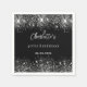 A stylish black background with elegant faux silver glitter, sparkles. The text: The name is written in white with a modern hand lettered style script. Personalise and add a name, age and a date.