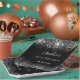 A stylish black background with elegant faux silver glitter, sparkles. The text: The name is written in white with a modern hand lettered style script. Personalise and add a name, age and a date.
