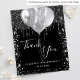 A thank you note for a 18th (or any age) birthday. A chic black background colour. With faux silver glitter drips, paint dripping look and balloons. On front large hand lettered script and the text: Thank You, your text, title and a date.