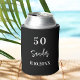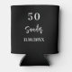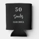 For a 50th (or any age) birthday party. A black background. Add your name, age, date. The name is written with a modern hand lettered style script. White text.