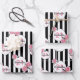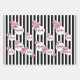 Birthday black white stripes pink florals paris wrapping paper sheet