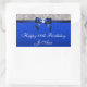 Birthday Blue Bow Silver Sequins Rectangular Sticker