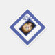 A blue and white photo napkin for a boy. A blue frame and white background. Blue coloured letters and the text: Happy Birthday! A template for Your photo of birthday child.