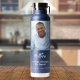 Personalise and add your own photo of the birthday boy/man. The text: The name in white with a modern hand lettered style script. Personalise and add a name, age 40 and a text. Text: The Man, The Myth, The Legend. Blue bottle.