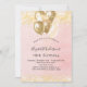 For an elegant 18th (or any age) birthday. A gradient blush pink background, golden glitter and faux gold balloons. Personalise and add a name, age and party details. The name is written with a hand lettered style script