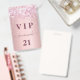 A modern, stylish and glamourous badge for a 21st (or any age) birthday party. A blush pink gradient background with faux glitter dust. With the text: VIP. Personalise and add a name, age, party details on the back. The name is written with a modern hand lettered style script with swashes.