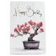 Potted bonsai tree with pink flowers on soft white background for birthday.