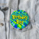 Here's a cool colourful popular round button pin with yellow and blue circles or dots in a geometric pattern and a green background and "Birthday Boy" text in 3d look yellow, or add your own custom text. Easy to customise this fun and unique party button badge pin--easily personalise with any age or name, etc. A happy button pin favour for that special birthday boy (or girl) as well as for guests at parties for children, teens, and men and women of all ages! Lots of sizes!