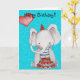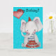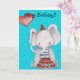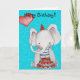 A lovely card to wish a child "Happy Birthday" - From my original painting watercolor on paper a baby elephant with a heart shaped balloon and a wonderful birthday cake on a blue background decorated with hearts. Customise text and fonts and make it wonderful!!