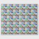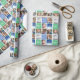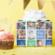 Cute blue and green wrapping paper with a 6 photo template collage of the birthday boy and her his monogrammed on the cool squares next to a fun birthday cake. Beautiful personalised Happy Birthday gift wrap for a kid.