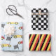 This fun race car Kids' birthday party has cute décor, for kids boys, and whimsical children, with a cartoon race cars, track derby, cool auto racing sports cars, a boys' birthday party gift wrap gift wrapping supplies, minimalist red-yellow colourful, retro chequered flag speedway, trendy stylish typography, kids birthday party supplies, a celebration fun classic pattern