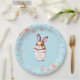 Cute birthday bunny plant pot with heart and flowers on light blue Paper Plates. Ideal for Easter, holidays, Birthday and more. Bunnies symbolise abundance, longevity and good fortune.