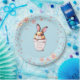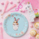 Birthday Bunny Plant Pot & Flowers on Light Blue Paper Plate