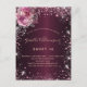 Birthday burgundy pink glitter floral glamourous invitation postcard