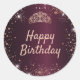 Birthday burgundy rose gold glitter tiara crown classic round sticker