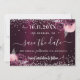 A Save the Date card for a 21st, (or any age) birthday party. A deep burgundy metallic looking background decorated with faux silver glitter, sparkles and burgundy and blush pink florals. Personalise and add a date and name/age. The text: Save the Date is written with a hand lettered style script with swashes.