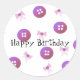 A cute design featuring purple buttons and little pink bows on a white background. The message 'happy birthday' can be changed as desired.
