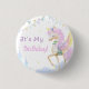 Birthday Buttons with an adorable unicorn with wings, which is surrounded by cute pictures of a magical castle, clouds and festive bunting.