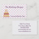 Fun customisable birthday cake business cards. Our unique business cards features a birthday cake graphic on a pink polka dot background. Edit all text fields to add your company information. These cute business cards are printed on 2 sides and would be perfect for cake businesses.