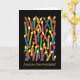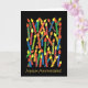 A brightly coloured Birthday Card with candles and 'Happy Birthday' in French, from a handpainted paper collage by Judy Adamson. The inside is left blank for your own message.