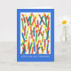 A brightly coloured Birthday Card with candles and 'Happy Birthday' in German, from a handpainted paper collage by Judy Adamson. The inside is left blank for your own message.