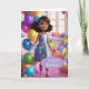 This happy birthday card is shown with a festive celebration of colourful balloons and girl print.