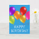 This birthday card is shown with a festive balloons print. Blank inside.
