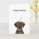 Birthday card for chocolate labrador mum and dad. Chocolate lab wearing a bow tie, glass, and party hat.