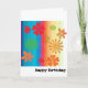 Floral birthday card design with blue, red, orange-yellow gradient background. Reminds you of being on a beach.