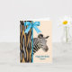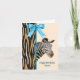 Birthday card for Auntie with an image of a Zebra peeking around a zebra skin framing with teal bow. The zebra skin is illustrated, and thanks to Creative Fabrica for the skin design. The background of the image is beige.