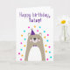 Birthday Card for Tatay. If you call your father Tatay instead of Dad, this birthday card is perfect for him. (Tatay means father in Tagalog / Filipino.) Your tatay will love this birthday card's cute, modern, colourful, Scandinavian-style design that features a brown and grey teddy bear cub with a purple party hat and bowtie and pink, yellow, and blue confetti with the text "Happy birthday, Tatay!"