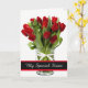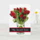 Birthday card shown with a pretty red tulips in a vase photo print.