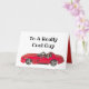 Cute & Funny Birthday Card w/Red Sports Car & Basset Hound
