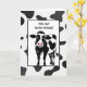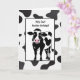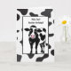 Cute cartoon cow with black and white abstract cow print for birthday.