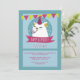 This white cat is ready to party! She wears a party hat and has a noise maker in her mouth. Party flags trim the upper border of the invitation. (<a href='http://www.freepik.com/free-vector/nice-birthday-cat-card_897590.htm'>Designed by Freepik</a>). <br/><br/>The card is easy to customise with your wording, font, font colour, paper shape options and choice of six paper types.<br/><br/>Not exactly what you're looking for? All our products can be custom designed to meet your needs at no extra charge.<br/><br/>Simply contact us at askcottonlamb@gmail.com<br/><br/>Coordinating products available: Just ask us!