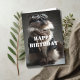 Birthday card featuring a photo of cat wearing a leather jacket, scarf and goggles. Inside are birthday wishes that say "Feline good at cruising altitude". Perfect for a pilot, aviation enthusiast, or cat lover. Customize it with your own birthday wishes to make it extra special.
