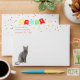 This happy birthday envelope has a grey cat on the front with sprinkles of confetti at the top. You can easily customise your name and return address with the templates I have provided. The back flap has a colourful "Happy Birthday" banner with confetti and the inside has a coordinating stripe. If you prefer a different coloured cat, please let me know. If you like what you see, but don’t see what you want, I can edit my designs to print on the items you need. For your order and shipping issues, please contact Zazzle's Customer Support via https://goo.gl/nCgptf