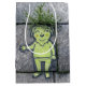 A whimsical drawing of a smiling female character is integrated into the pavement, with tufts of green weeds providing playful hair.