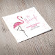 This design features a cocktail napkin party decor, with a birthday theme, a pink, cute, simple, tropical style, with let's flamingle wording, perfect for a summer party, with a watercolor pink flamingo