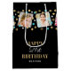 Celebrate a special birthday with a custom photo gift bag! This stylish design features elegant typography, and eight of your favourite photos surrounded by confetti and stars. Personalise the template with the recipient's name, and age — perfect for a landmark 16th, 18th, 21st, 30th, 40th or 50th birthday. Printed colours: blue-green, teal, turquoise, black, white, and faux gold. Available with a choice of a matte or glossy finish.