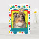 Celebrate a birthday with this whimsical Australian Shepherd Dog Greeting Card. With a cupcake balanced on it's head, this design is sure to bring a smile and giggles! BTW, This design has several versions, with different background colours. There is also an invitation to a Party version.