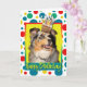 Celebrate a birthday with this whimsical Australian Shepherd Dog Greeting Card. With a cupcake balanced on it's head, this design is sure to bring a smile and giggles! BTW, This design has several versions, with different background colours. There is also an invitation to a Party version.