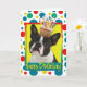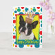 Celebrate a birthday with this whimsical Boston Terrier Dog Greeting Card. With a cupcake balanced on it's head, this design is sure to bring a smile and giggles! BTW, This design has several versions, with different background colours. There is also an invitation to a Party version.
