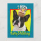 Celebrate a birthday with this whimsical Boston Terrier Dog Greeting Card. With a cupcake balanced on it's head, this design is sure to bring a smile and giggles! BTW, This design has several versions, with different background colours. There is also an invitation to a Party version.