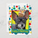 Celebrate a birthday with this whimsical Chihuahua Dog Greeting Card. With a cupcake balanced on it's head, this design is sure to bring a smile and giggles! BTW, This design has several versions, with different background colours. There is also an invitation to a Party version.