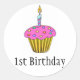 Adorable cupcake with 1 candle in it. Perfect for birthday card greetings, birthday party invitations for every age and first birthdays
