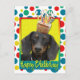 Celebrate a birthday with this whimsical Dachshund Dog Greeting Card. With a cupcake balanced on it's head, this design is sure to bring a smile and giggles! BTW, This design has several versions, with different background colours. There is also an invitation to a Party version.