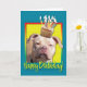 Celebrate a birthday with this whimsical Pitbull Dog Greeting Card. With a cupcake balanced on it's head, this design is sure to bring a smile and giggles! BTW, This design has several versions, with different background colours. There is also an invitation to a Party version.